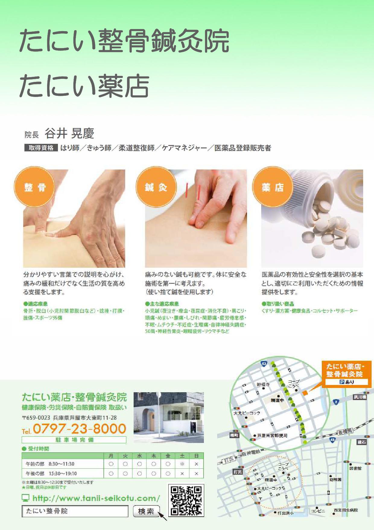 芦屋市整骨院 打出 たにい整骨院・鍼灸院・薬店 > パンフレット
